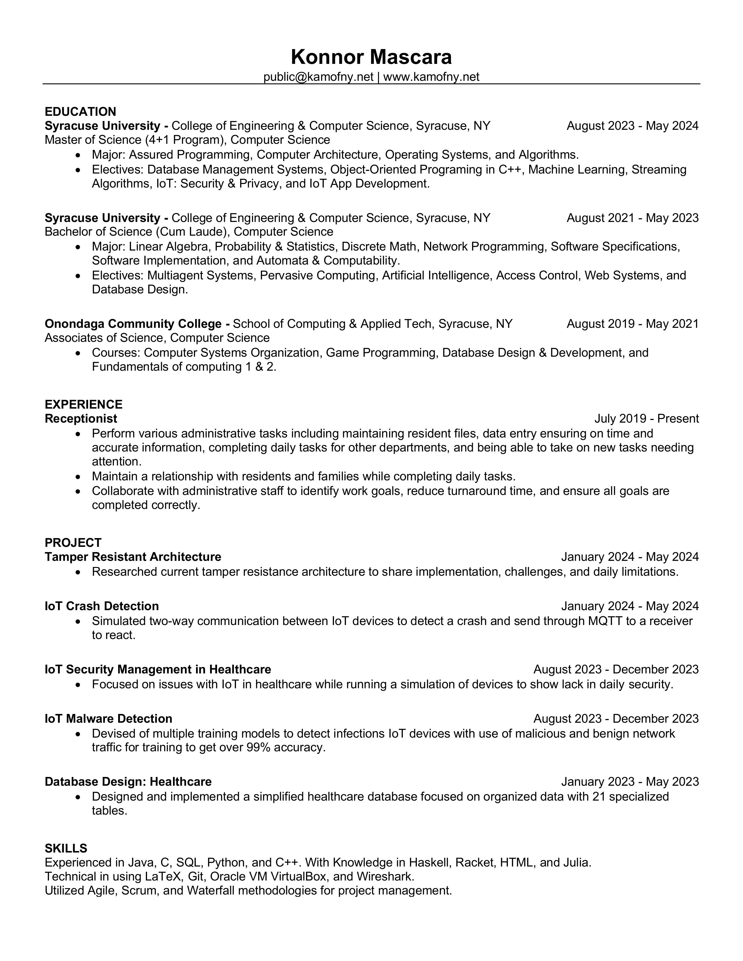 Master's in Computer Science, Syracuse University